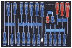 Набор ручных профессиональных инструментов марки King Tony в количестве 235 предметов, размещенных на 12 ложементах, оптимально подобран для организации рабочего места в автомобильном сервисе, автомастерской или производственном предприятии.