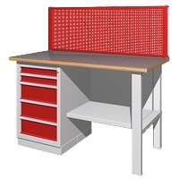 - Верстак слесарный однотумбовый собирается из трех частей: столешница серии 01.314, тумба верстачная серии 01.4ХХ, комплект полка/стенка/опора 01.501.