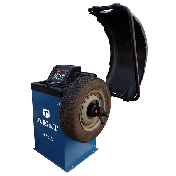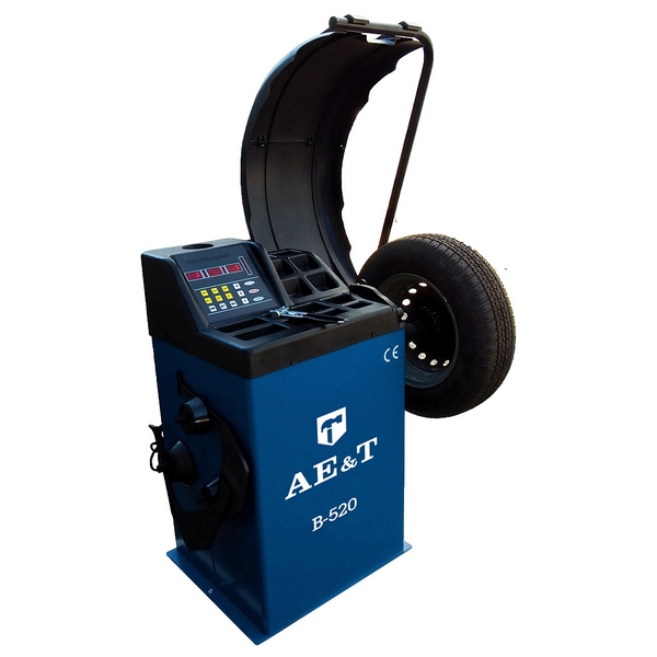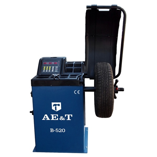 Балансировочный станок AE&T B-520 характеризуется автоматическим измерением диаметра диска и расстояния до диска с помощью электронной линейки, высокоточным измерениями, наличием функции самокалибровки. У устройства усовершенствованное программное обеспечение, вал отличается повышенной прочностью и стойкостью к износу, имеются несколько лотков для мелочевки. Стенд может работать с колесами массой до 65 кг. Станок для балансировки колес комплектуется 4 конусами различного диаметра, калибровочным грузиком, быстрой гайкой и клещами.