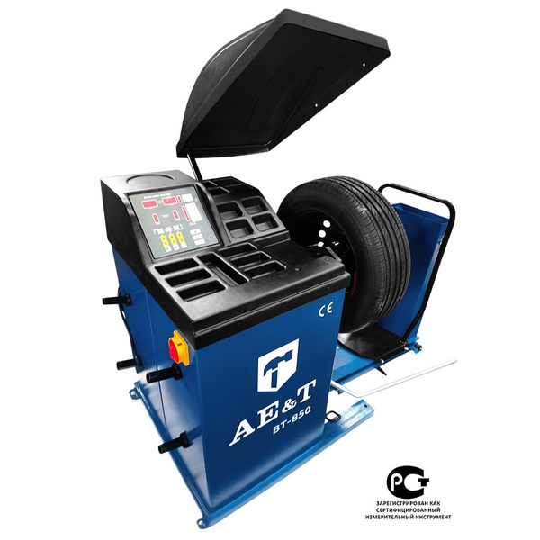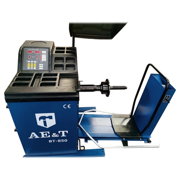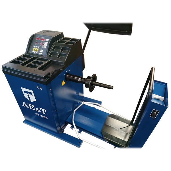 Для установки особо тяжелого колеса на вал балансировочный станок AE&T BT-850 оснащен пневматическим подъемным устройством, также имеется педаль тормоза. Стенд позволяет производить статическую и динамическую балансировку колес с полностью автоматизированной программой. Управление происходит при помощи мощного микропроцессора с особой точностью и при использовании прогрессивных технологий. Для балансировки колес с легкосплавными дисками имеются 3 специальных программы. Кроме этого станок отличается наличием режима самокалибровки и диагностики при запуске.