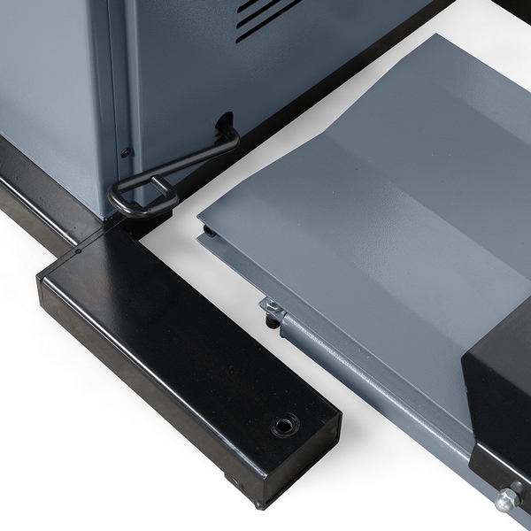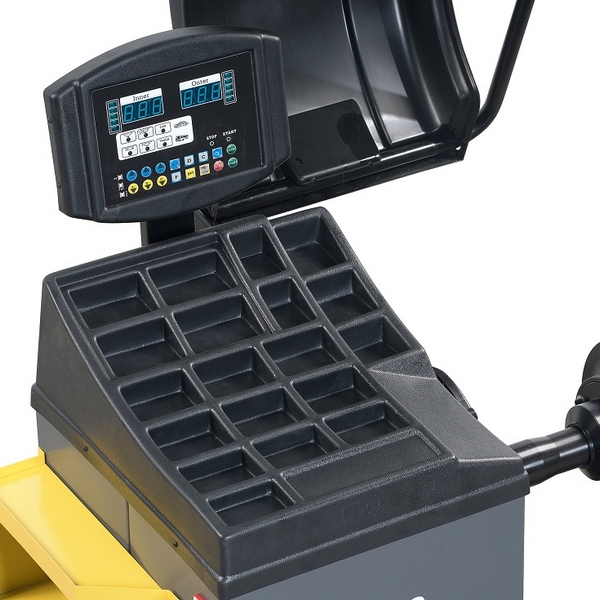 Станок изготовлен из качественных материалов и комплектующих, имеет усиленную конструкцию корпуса. Пневматическое подъемное устройство позволяет облегчить установку на вал и демонтаж с него колеса массой до 150 кг. Сам вал диаметром 40 мм смонтирован на высококачественных подшипниках, что гарантирует высокую точность измерения, долговечность и низкий уровень шума при работе.