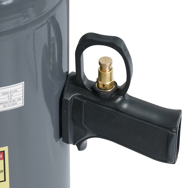 - имеются удобная рукоятка пистолетного типа, фитинг быстросъемного соединения с шаровым краном для заправки емкости сжатым воздухом и ручка для дополнительного удержания и переноски устройства.