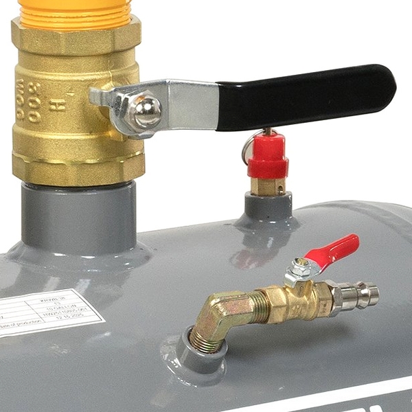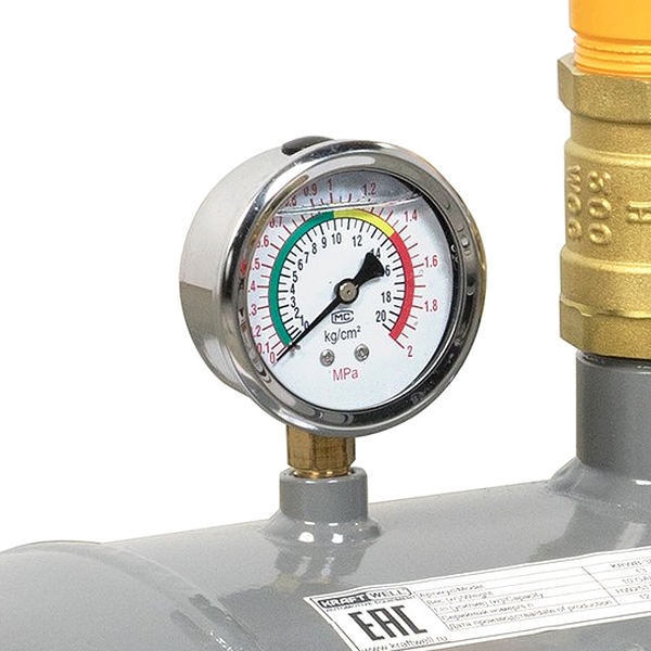 Баллон-инфлятор изготовлен из крепкого металла и покрыт порошковой краской желтого цвета, защищающей от коррозии. Оснащен фитингом быстросъемного соединения, большим манометром, предохранительным клапаном и ручкой для переноски. Бустер подходит для работы с шинами диаметром до 47". Рабочее давление воздуха составляет 6-8 бар, максимальное – 10 бар.