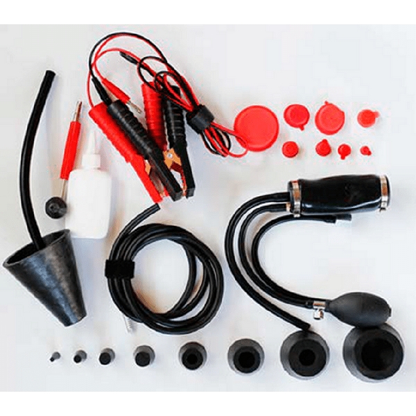 Устройство комплектуется широким выбором крышек/адаптеров/переходников для подключения к отверстиям систем различных типов. Электропитание прибора происходит от АКБ автомобиля 12V при помощи проводов с зажимами.