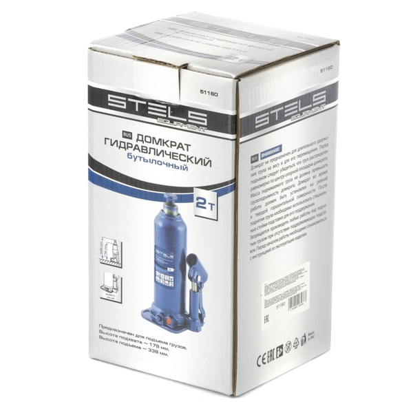 Гидравлический домкрат бутылочного типа Stels позволяет поднять кроссоверы, внедорожники, а также другую технику и грузы массой до 2 тонн на высоту от 178 до 338 мм. Применяется автолюбителями для замены колес, проведения ремонтных и иных работ.