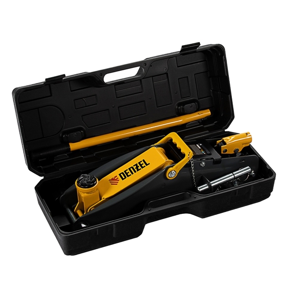 Подкатной гидравлический домкрат с ручным приводом Denzel, обладающий максимальной грузоподъемностью 2800 кг, предназначен для подъема легковых автомобилей, минивэнов и кроссоверов, а также иных грузов. Применяется автовладельцами при смене колес, проведении диагностических, ремонтных и прочих работ.