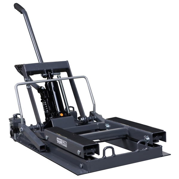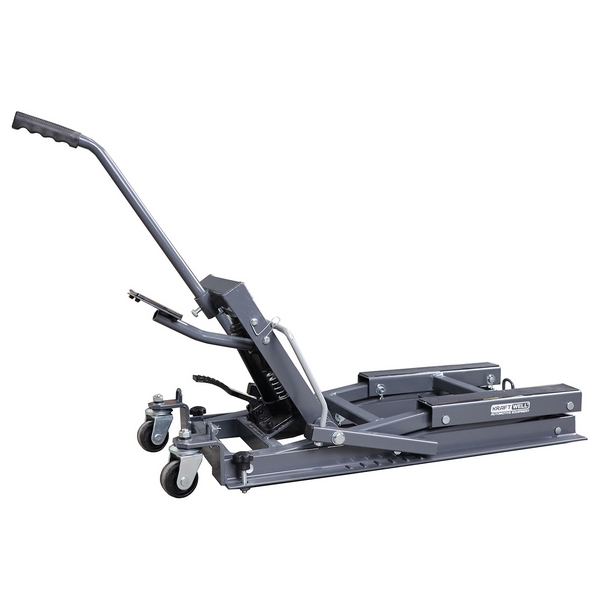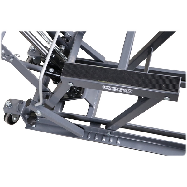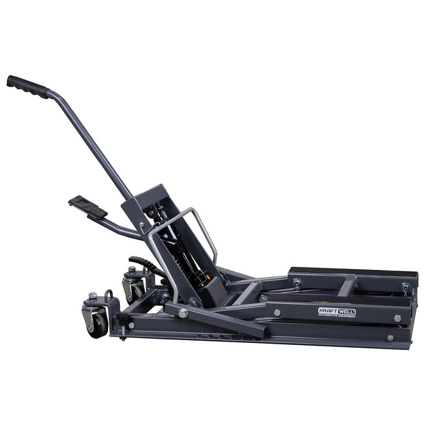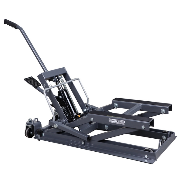 Подкатной домкрат KraftWell предназначен для подъема и временного удержания на высоте мотоциклетной техники различных марок и моделей при проведении сервисных, ремонтных, диагностических и иных работ. Применяется в профильных мотомастерских, персональных гаражах и т.д.
