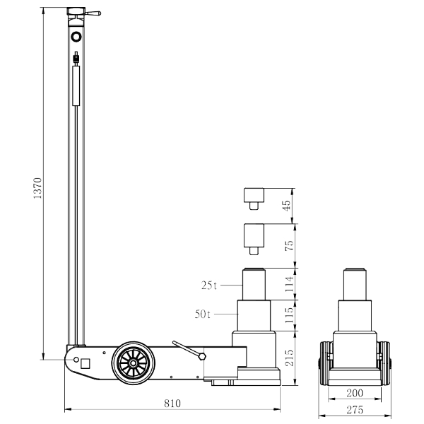 - первая ступень грузоподъемностью 50 тонн (подъем на 115 мм), вторая – 25 тонн (подъем ещё на 114 мм);