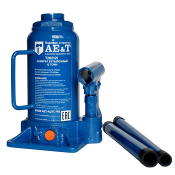 Обладающий грузоподъемностью в 12 тонн гидравлический домкрат бутылочного типа AE&T предназначен для подъема и временного удержания на высоте грузовых автомобилей, автобусов, сельскохозяйственной, специальной и другой техники, а также промышленного оборудования, различных конструкций и т.д.