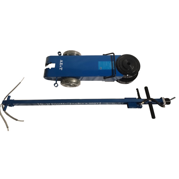 Смонтированный на подкатной тележке мощный гидравлический домкрат с пневматическим приводом AE&T, обладающий грузоподъемностью 120 и 60 тонн, предназначен для подъема грузовых автомобилей, автобусов, строительной и другой крупной техники при проведении шиномонтажных и иных работ в автосервисах, мастерских, автотранспортных предприятиях и т.д.