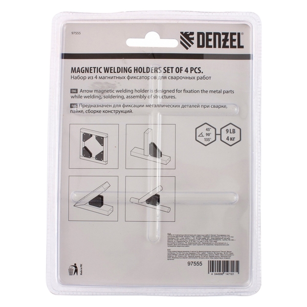 Набор из 4 компактных магнитных угольников Denzel предназначен для фиксации металлических деталей при сварке, пайке, сборке конструкций и других операциях. Применяется в слесарных мастерских, автосервисах, на небольших производствах и т.д.