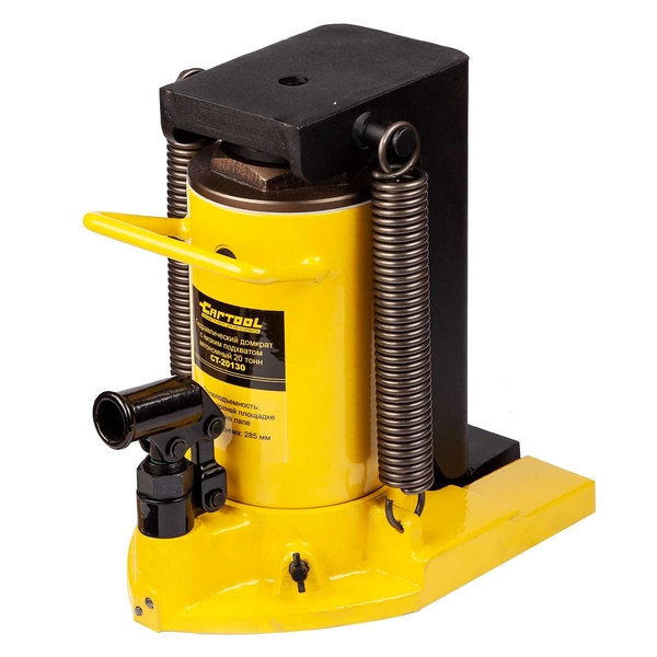 Гидравлический зацепной домкрат Car-Tool с минимальной высотой подхвата 20 мм предназначен для подъема и временного удержания на высоте автотранспорта, сельскохозяйственной, строительной и другой техники, крупных конструкций, промышленного оборудования и прочих тяжелых предметов.