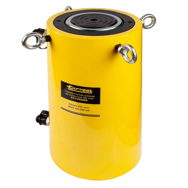 Высокомощный двухполостной (двустороннего действия) гидравлический цилиндр Car-Tool, развивающий максимальное усилие в 200 тонн, предназначен для обслуживания тяжелой спецтехники, подъема крупногабаритных конструкций, распора, прессования и т.д.
