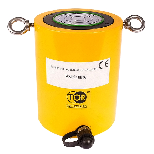 Гидроцилиндр растяжного типа одностороннего действия (домкрат) TOR, развивающий максимальное усилие в 100 тонн, применяется для подъема тяжелых и крупногабаритных грузов, проведения ремонтных работ с техникой и строительными конструкциями или в роли силового элемента в промышленных механизмах и устройствах.
