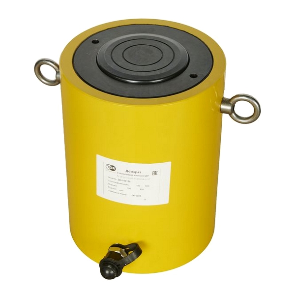 Мощный гидроцилиндр растяжного типа и одностороннего действия (домкрат) TOR, развивающий максимальное усилие в 150 тонн, применяется для подъема тяжелых и крупногабаритных грузов, проведения ремонтных работ со спецтехникой и строительными конструкциями или в роли силового элемента в промышленных механизмах и устройствах.
