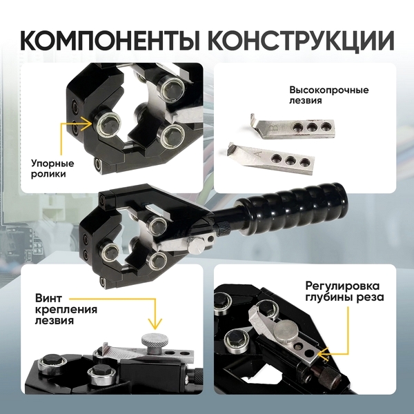 - точная регулируемая глубина реза до 6 мм под разные оболочки и толщины защищает жилы и изоляцию;