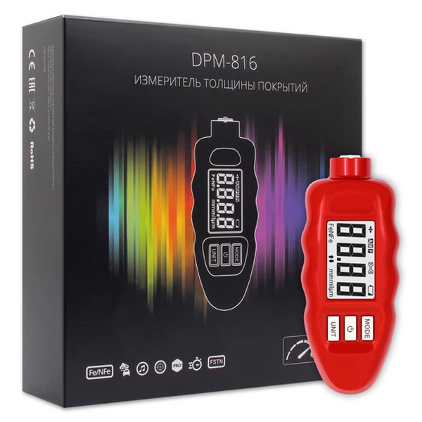 Компактный электронный прибор CarSys DPM-816 Pro в новой упаковке и с комплектом аксессуаров предназначен для точного и стабильного измерения толщины от 0 до 3 мм различных покрытий на черных, оцинкованных и цветных металлах, в том числе на выпуклых и вогнутых поверхностях. Применяется на станциях кузовного ремонта, страховыми компаниями, при подборе нового или подержанного автомобиля, на производствах, в промышленности и т.д.