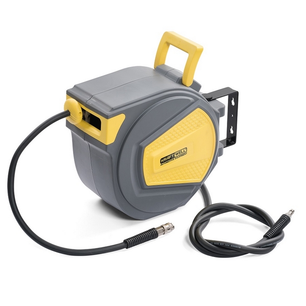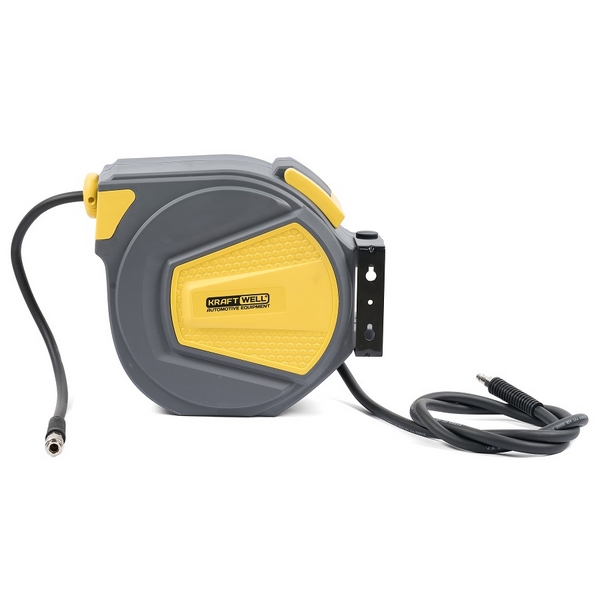 Шланг на закрытой инерционной катушке KraftWell предназначен для подачи сжатого воздуха от пневмолинии к инструменту или оборудованию, а также для раздачи воды. Применяется в автосервисах, автомастерских, шиномонтажах, на автомойках и т.д.