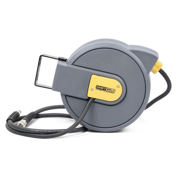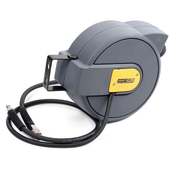 Шланг на закрытой инерционной катушке KraftWell предназначен для подачи сжатого воздуха от пневмолинии к инструменту или оборудованию, а также для раздачи воды. Применяется в автосервисах, автомастерских, шиномонтажах, на автомойках и т.д.