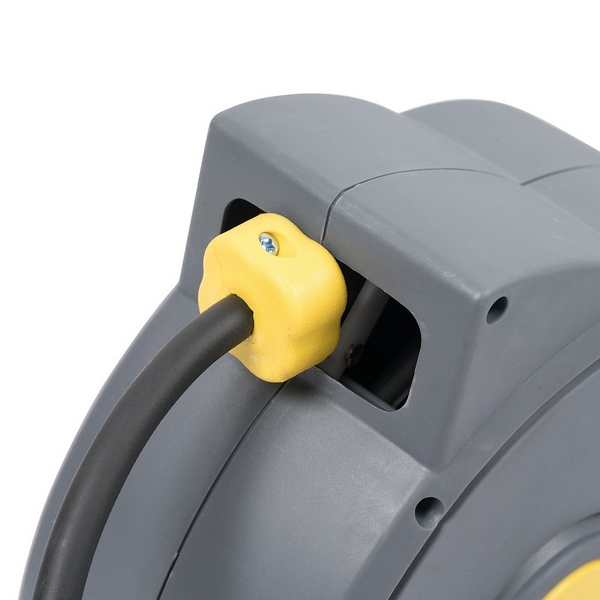 Катушка имеет закрытый корпус из ударопрочного пластика. Поворотный металлический кронштейн для крепления на стену или колонну позволяет поворачивать катушку на 180 градусов.