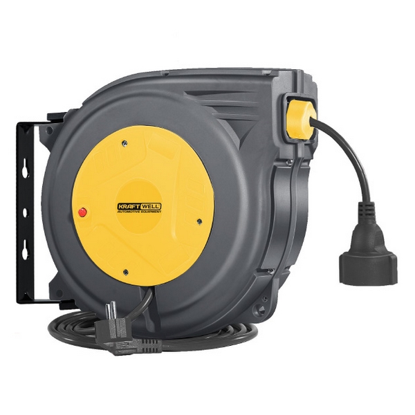 Электрический удлинитель KraftWell длиной 15 м, смонтированный на инерционной катушке закрытого типа, предназначен для подключения различных электроинструментов, световых приборов и оборудования к сети 220 В. Сфера эксплуатации: автосервисы, мастерские, производственные предприятия, строительные площадки и т.д.