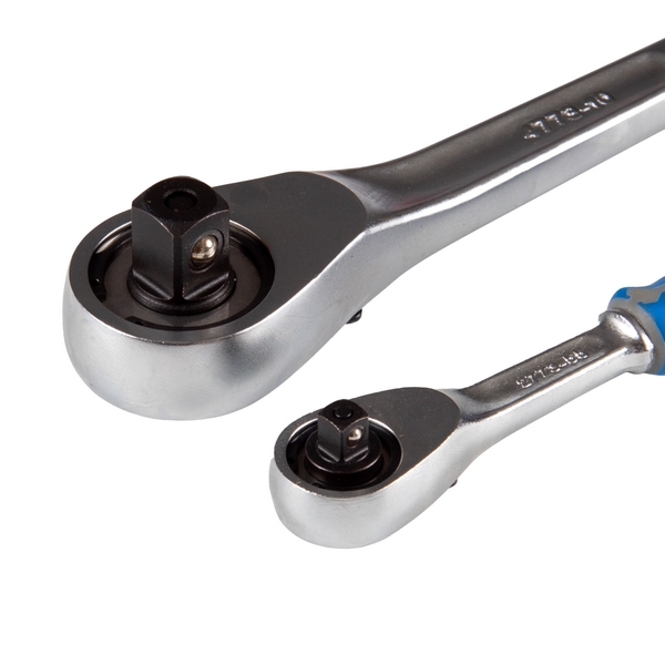 - реверсивные трещоточные механизмы с 90 зубцами и углом 4° выполнены из хромомолибденового сплава и облегчают работу в труднодоступных местах;