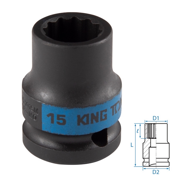 Профессиональная торцевая головка King Tony предназначена для монтажа и демонтажа резьбового крепежа размером 15 мм при использовании ударных гайковертов и других инструментов 1/2"DR. Сфера эксплуатации: автосервисы, мастерские, производственные и иные предприятия и т.д.