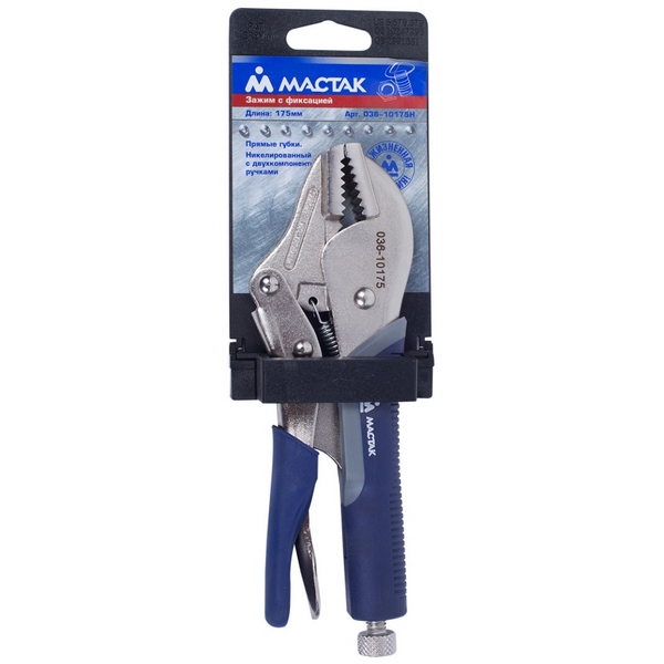 Зажим с фиксатором Мастак 036-10175H общей длиной 175 мм предназначен для зажима деталей и конструкций при проведении сварочных и других работ в автосервисах, на станциях кузовного ремонта и мастерских широкого профиля.