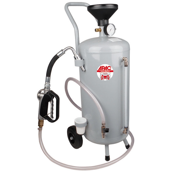 Передвижная пневматическая установка APAC 1910N с баком объемом 24 литра предназначена для распределения жидких масел. Используется для заполнения моторными маслами автомобилей и другой техники в условиях автосервиса, мастерской, а также при обслуживании транспортных средств на удалении от стационарных СТОА.