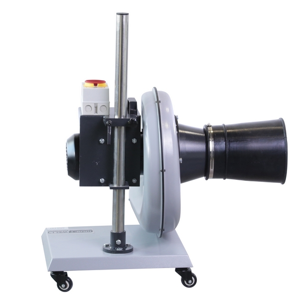 - вентилятор мощностью 0,75 кВт (380 В) закреплен на вертикальной стойке с возможностью регулировать высоту подъема;