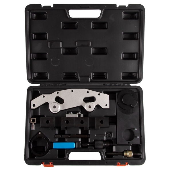 Набор специальных приспособлений Affix предназначен для установки и регулировки фаз ГРМ на 6-цилиндровых двигателях BMW с одним фазорегулятором и системой Double VANOS. Применяется в профильных автосервисах и автомастерских, на СТО и т.д.