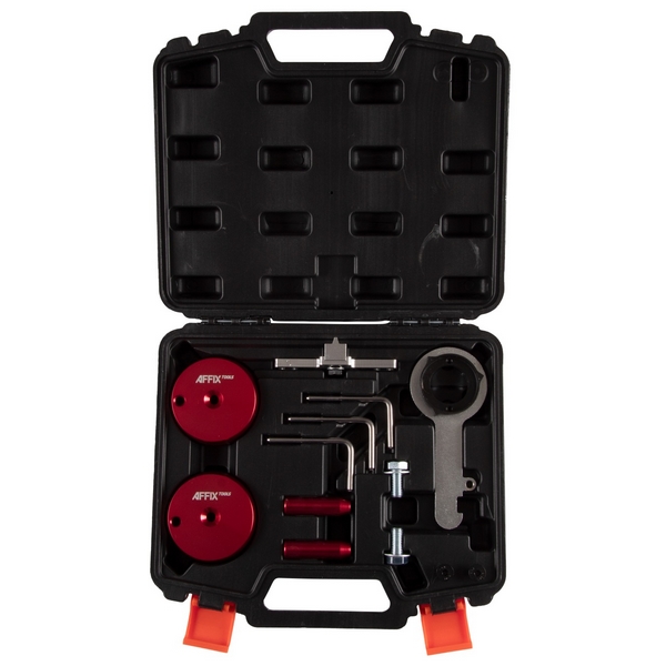 Набор специнструмента Affix служит для фиксации распредвалов и коленвалов при проверке и регулировке фаз газораспределения двигателей на автомобилях Ford. Применяется в профильных и универсальных автосервисах и автомастерских, персональных гаражах и т.д.