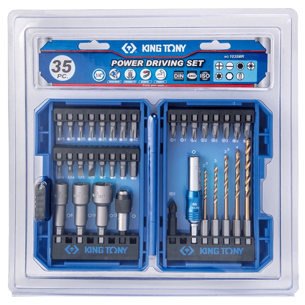 Набор бит (вставок) различных профилей, держателей и сверл King Tony предназначен для проведения монтажно-демонтажных работ с резьбовым крепежом, а также сверления отверстий при помощи электрических сетевых или аккумуляторных шуруповертов. Применяется при ремонте и обслуживании различной техники, оборудования, инструмента, конструкций – как профессионалами, так и частными мастерами.