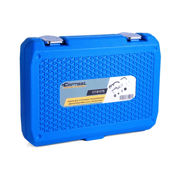 Набор специальных приспособлений Car-Tool предназначен для установки и регулировки фаз ГРМ, а также проведения других ремонтных работ и технического обслуживания на дизельных двигателях BMW N47, N47S, N57 объемом 2.0 и 3.0 л. Применяется в автосервисах, автомастерских, на СТО и т.д.