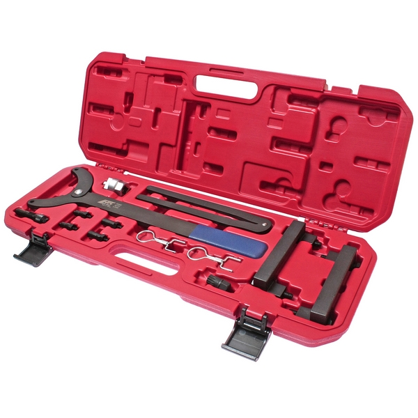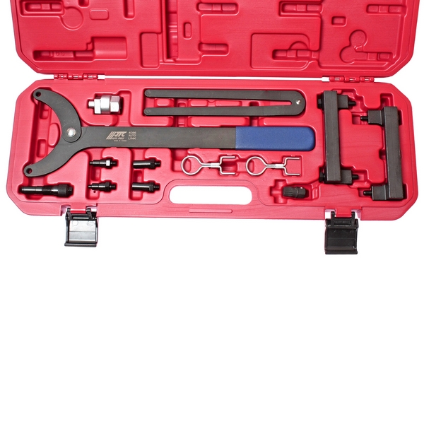 Набор профессиональных специнструментов JTC предназначен для фиксации распределительных и коленчатых валов при установке и регулировке фаз ГРМ на автомобилях Audi. Применяется в профильных и универсальных автосервисах и автомастерских, на СТО и т.д.