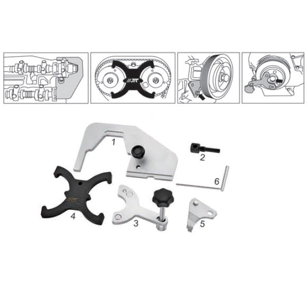 Набор профессионального специнструмента JTC предназначен для фиксации распределительных и коленчатых валов при установке и регулировке фаз ГРМ, а также проведении других ремонтных работ на двигателях легковых автомобилей Volvo. Сфера применения: профильные и универсальные автосервисы и автомастерские, СТО и т.д.