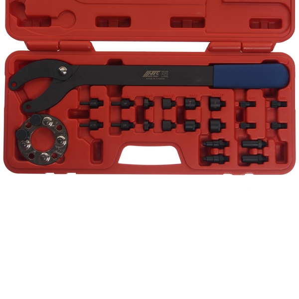 Набор профессиональных специнструментов JTC предназначен для фиксации распределительного вала бензиновых двигателей автомобилей Volkswagen AG при регулировке фаз ГРМ, а также проведении других ремонтных и сервисных работ. Сфера эксплуатации: профильные и универсальные автосервисы и автомастерские, СТО и т.д.