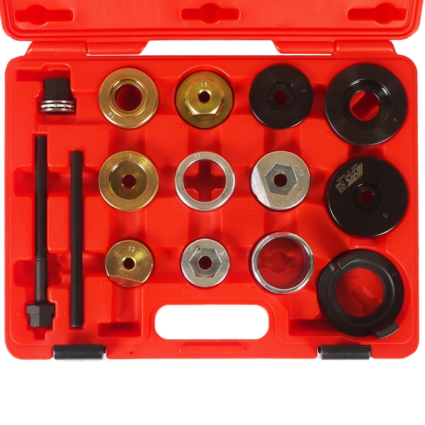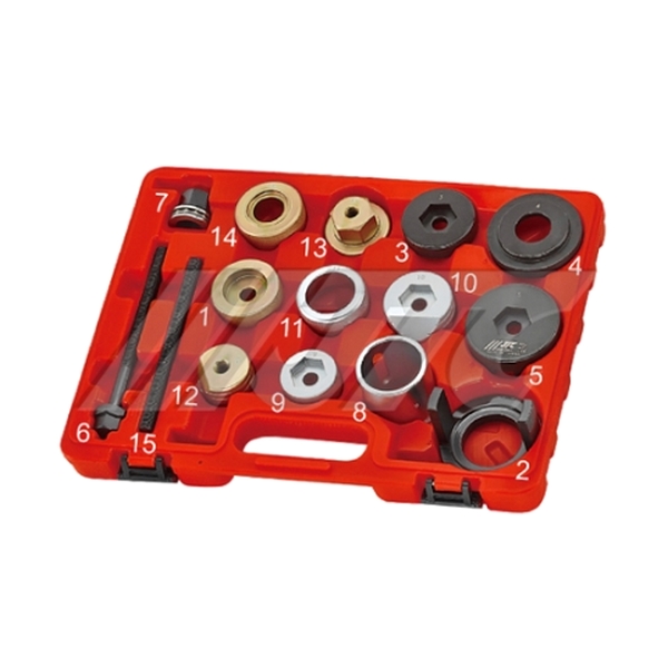 Набор специальных инструментов JTC предназначен для замены сайлентблоков подрамника заднего дифференциала на автомобилях BMW в кузовах E36, E46 и E85. Сфера применения: профильные и универсальные автосервисы и автомастерские, СТО и т.д.