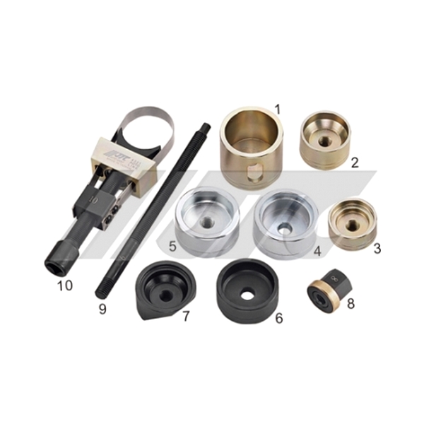 Набор специальных инструментов JTC предназначен для замены сайлентблоков задней оси на автомобилях BMW в кузовах E87, E90 и E93. Сфера применения: профильные и универсальные автосервисы и автомастерские, СТО и т.д.
