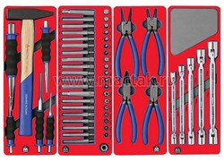 Оптимально подобранный набор инструментов "МАСТЕР" в тележке Мастак 52-04205R подойдёт для выполнения основных видов слесарных работ при ремонте и техническом обслуживании автомобилей, мотоциклов и другой техники. Размещение инструментов в ложементах и в ящиках тележки по типу и назначению позволяет создать на рабочем месте порядок и упрощает работу мастера. Ложементы изготовлены из EVA (ЭВА, этиленвинилацетата) – легкого, прочного и стойкого к маслам и растворителям материала. Для дополнительной защиты верхняя поверхность ложементов покрыта пластиком. Все инструменты набора Мастак 52-04205R изготовлены из качественных материалов, отвечают высоким требованиям, отличаются прочностью, надежностью, длительным ресурсом и удобством в эксплуатации.