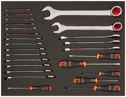 Тележка для инструментов Bahco оснащена 7 ящиками различной высоты. Монтирование их на шариковых подшипниках обеспечивает плавное скольжение, максимальная нагрузка на каждый ящик составляет 30 кг. Имеется надежная система центрального замка. Инструменты в тележке размещаются на ложементах, что создает на рабочем месте порядок. Дополнительное пространство позволяет расположить различные приспособления, техническую литературу, личные вещи мастера. Вращающиеся прорезиновые колеса, два из которых оснащены тормозами, и рукоятка позволяют легко перемещать тележку по территории ремзоны или цеха.