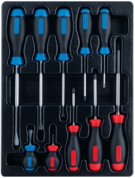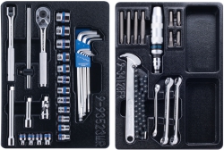 Инструменты набора изготовлены из высококачественной хромованадиевой стали специального сплава, отличаются крепкой и надежной конструкцией, способны выдерживать высокие интенсивные нагрузки, соответствуют самым жестким стандартам качества. Рукоятки обеспечивают уверенный и удобный хват, обладают стойкостью к химическим жидкостям. Предметы набора размещены на ложементах из легкого и прочного материала ПВХ (поливинилхлорида). Одним из преимуществ является возможность расположения ложементов на полках по своему усмотрению, исходя из удобства и частоты пользования определенными инструментами.