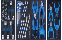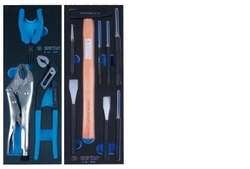 Предметы набора размещены на ложементах из легкого и прочного материала EVA (ЭВА, этиленвинилацетата). Одним из преимуществ является возможность расположения ложементов на полках по своему усмотрению, исходя из удобства и частоты пользования определенными инструментами.