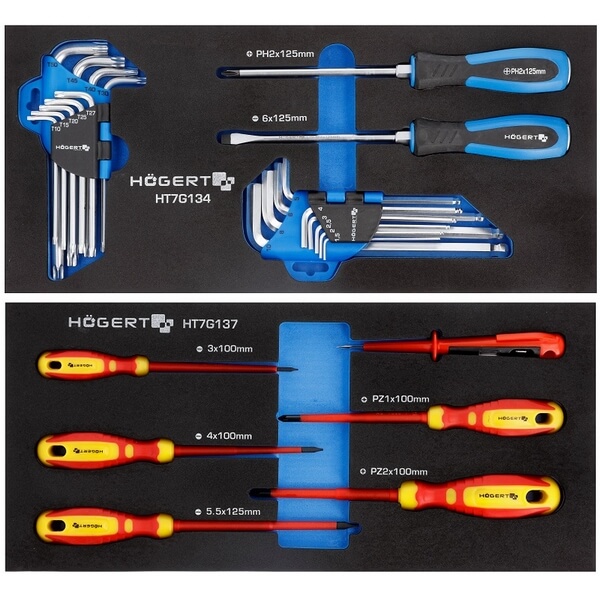 Инструменты отличаются прочностью, надежностью, увеличенным ресурсом, защищены от коррозии и удобны в эксплуатации. Все предметы набора уложены на ложементы, изготовленные из специальной технической пены (EVA) с профилированными выемками и маркировкой для быстрого поиска нужного изделия.