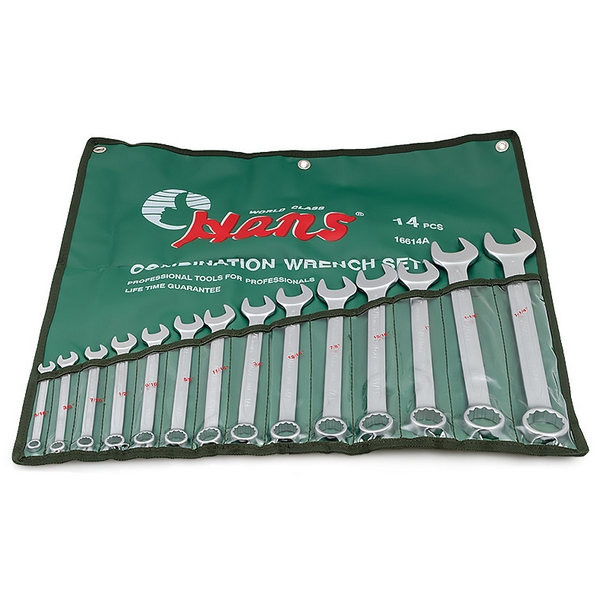 Набор рожково-накидных гаечных ключей дюймовых размерностей Hans предназначен для проведения монтажно-демонтажных работ с резьбовыми соединениями при ремонте и обслуживании авто-, мото- и другой техники, различного оборудования, конструкций и т.д.
