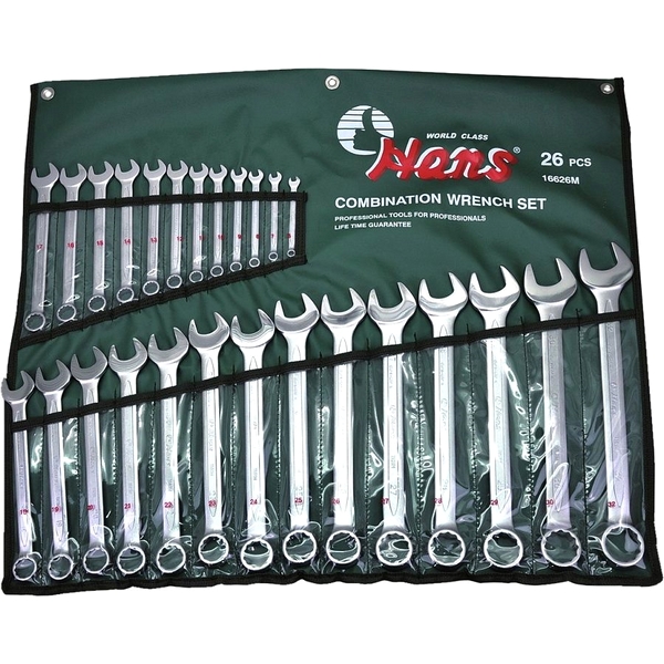 Набор рожково-накидных гаечных ключей Hans предназначен для проведения монтажно-демонтажных работ с резьбовыми соединениями при ремонте и обслуживании авто-, мото- и другой техники, различного оборудования, конструкций и т.д.