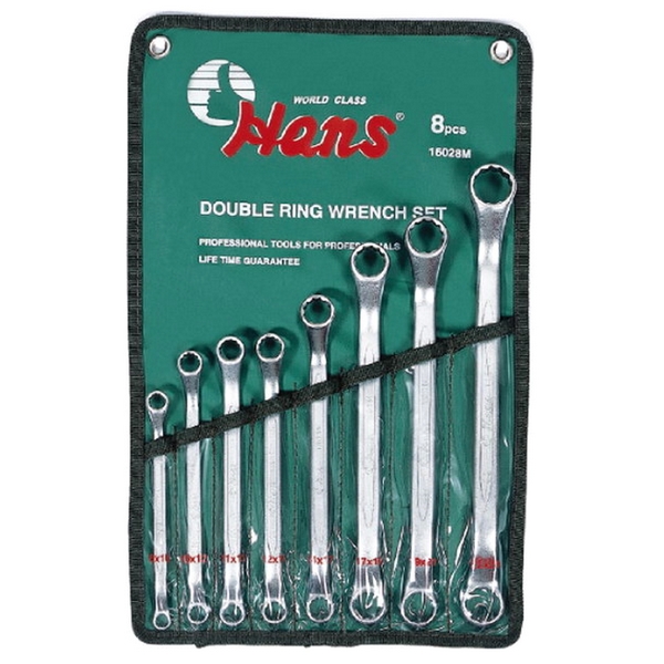 Набор двухсторонних изогнутых гаечных ключей накидного типа Hans предназначен для монтажно-демонтажных работ с резьбовыми соединениями при ремонте и обслуживании авто-, мото- и другой техники, различного оборудования, конструкций и т.д.