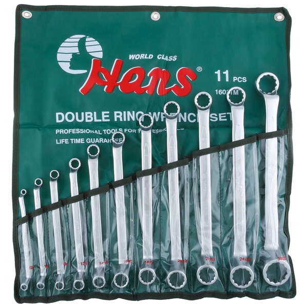 Набор двухсторонних изогнутых гаечных ключей накидного типа Hans предназначен для монтажно-демонтажных работ с резьбовыми соединениями при ремонте и обслуживании авто-, мото- и другой техники, различного оборудования, конструкций и т.д.