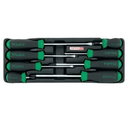 Набор отверток TOPTUL, размещенный в ложементе, предназначен для укомплектования тележек, ящиков и верстаков в автосервисах, автомастерских, на производственных и иных предприятиях.