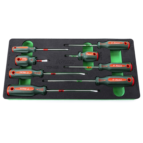 Набор отверток Hans, размещенный в ложементе, предназначен для укомплектования инструментальных тележек и ящиков. Используется для проведения монтажно-демонтажных работ с крепежом при ремонте и обслуживании авто-, мото- и другой техники, различного оборудования, конструкций и т.д.